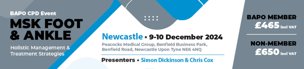 BAPO Short Course – MSK Foot & Ankle: Holistic Management & Treatment Strategies – Newcastle Upon Tyne 9-10 December 2024