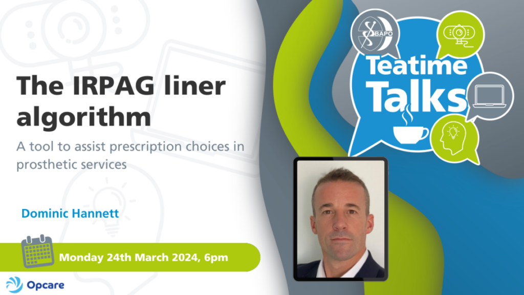 This session will give an over view of the prosthetic liner algorithm that was developed from the IRPAG (inter regional prosthetic audit group). IRPAG is made up of prosthetic centres in the South East of England. which includes Brighton, Charing Cross, Crystal Palace, Gillingham, Harold Wood, Luton and Dunstable, Oxford, Roehampton & Stanmore. The algorithm was created to achieve a more consistent approach to liner prescription across NHS services based on the clinical need of the patient.