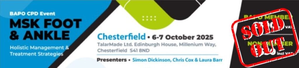 NEW Dates BAPO Short Course – MSK Foot & Ankle: Holistic Management & Treatment Strategies – Chesterfield 6-7 October 2025